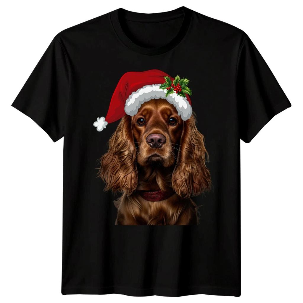 Spaniel Dog Christmas Holiday Animals Mens Womens Graphic Tee Festive Tee