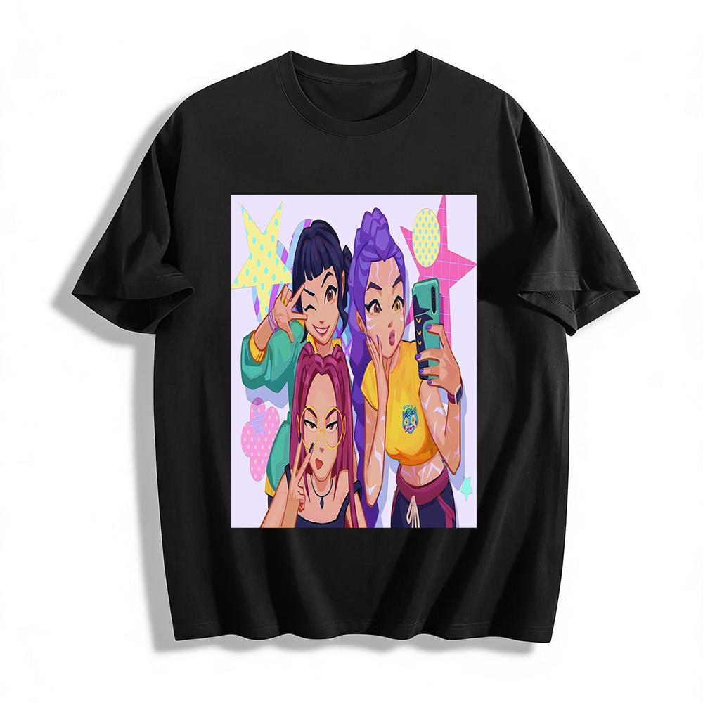 Cool Anime Girl Gang Graphic Tee, Trendy Street Style Casual Loose Crewneck Top For Teens Pure cotton T-shirt