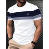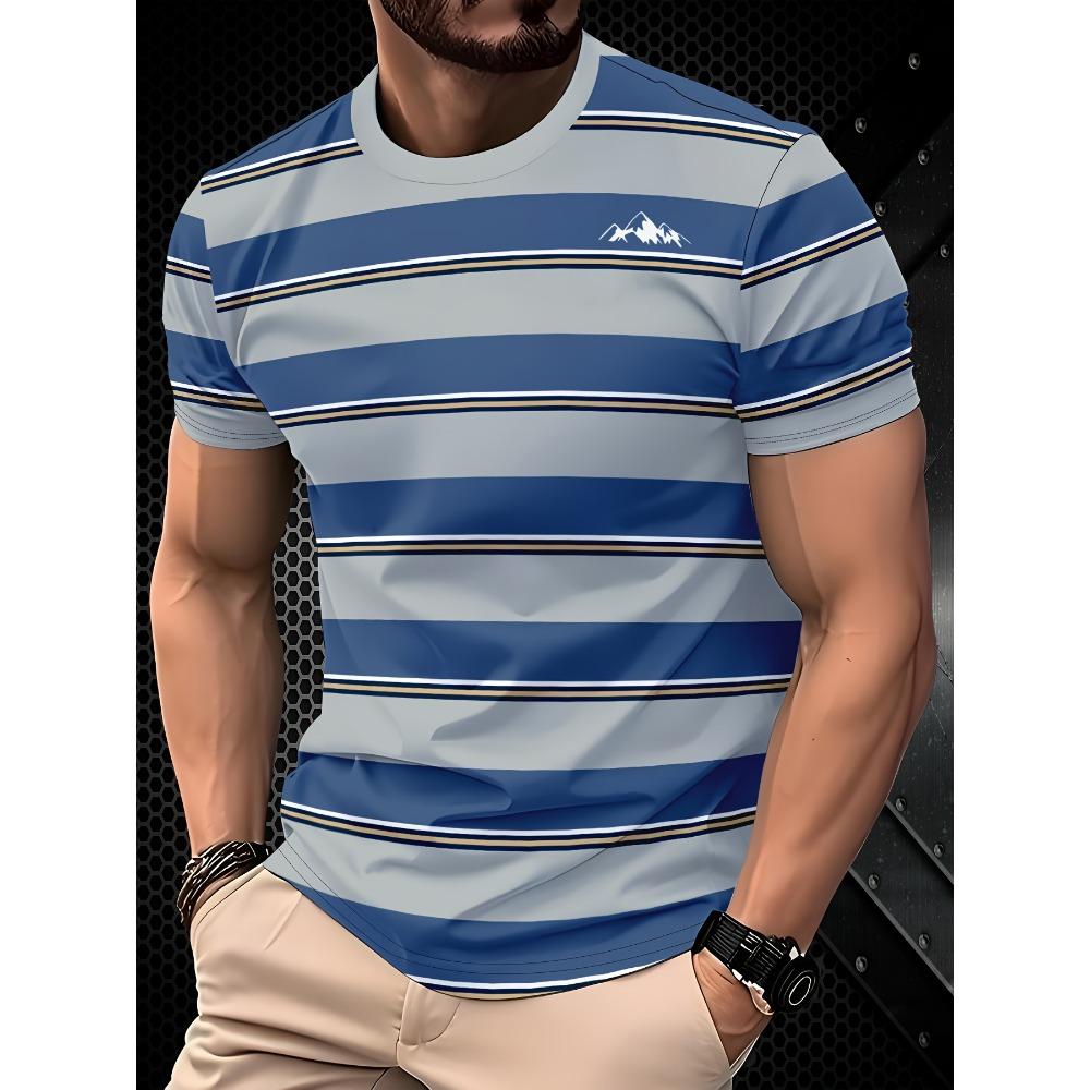 Men's mountain print striped T-shirt, round neck short sleeved