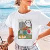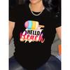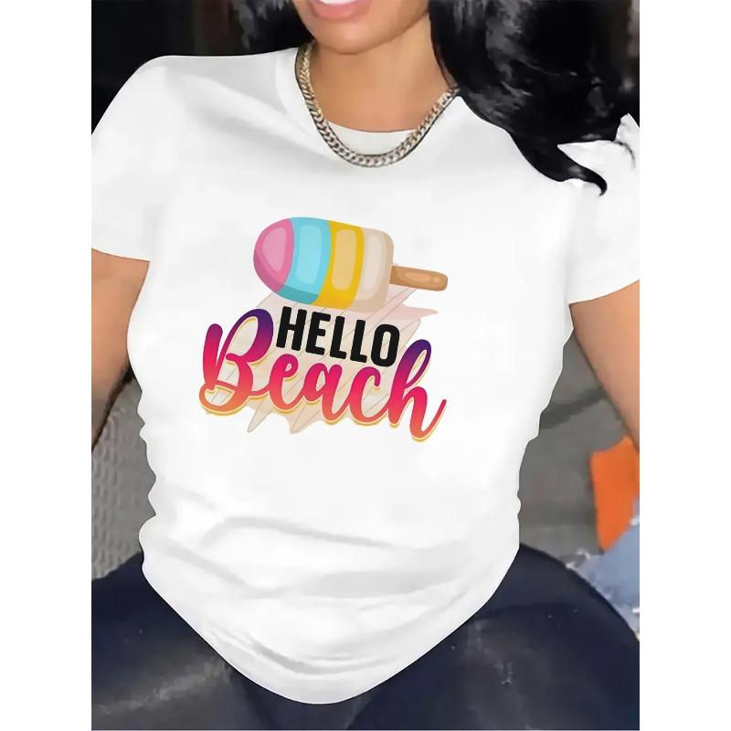 Colorful Ice Cream Hello Beach Print Cotton Short Sleeve Summer Tee