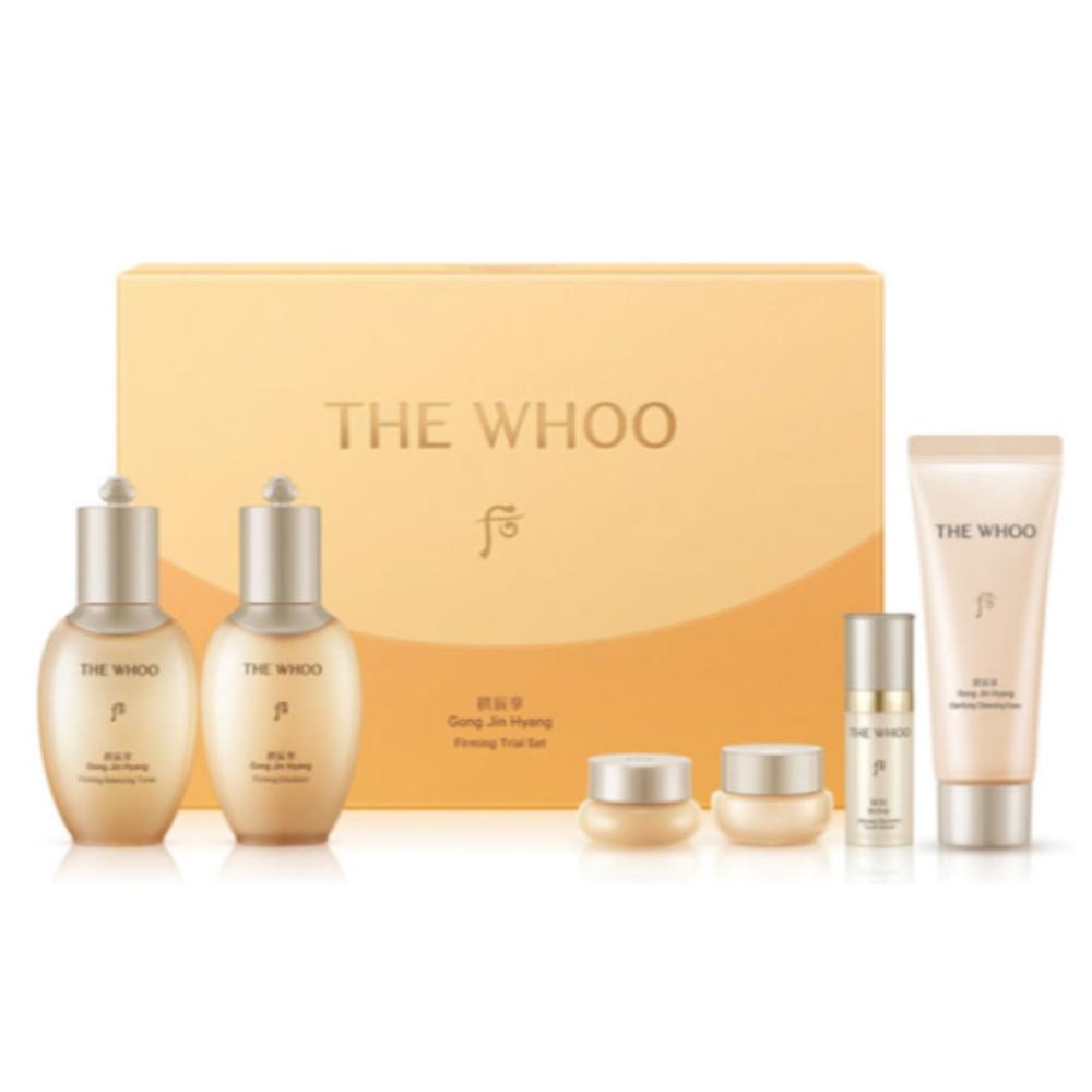 The History of Whoo Gongjinhyang Trial Set, Korean luxury skincare kit, royal herbal anti-aging set, Gongjinhyang travel collection, K-beauty firming ritual, nourishing skincare set, premium Korean cosmetics, ginseng skincare kit, intensive nutritive trial, South Korean luxury beauty set.