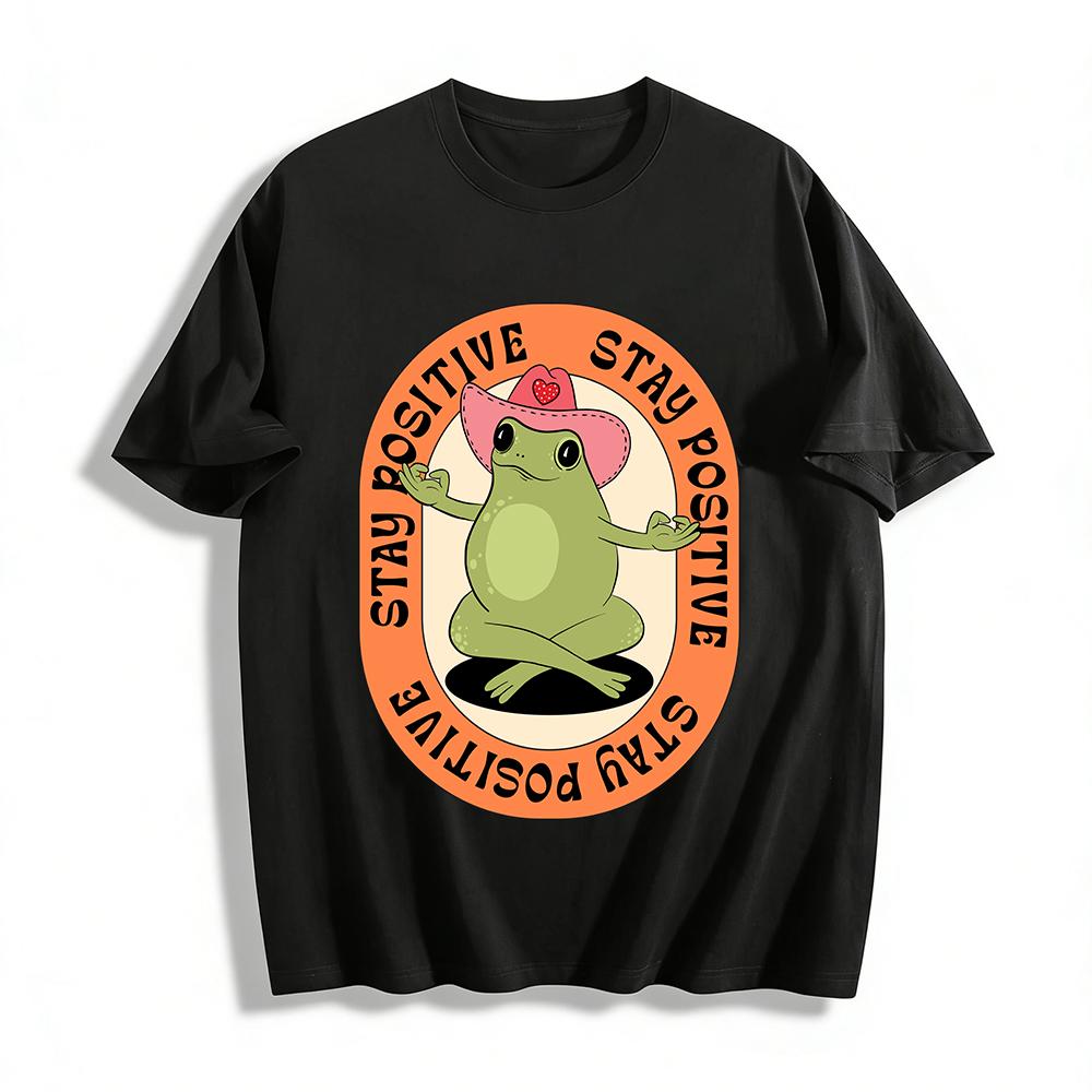 Women Men Fun Meditating Frog Print T-shirt Vintage Motivational Slogan Casual Crewneck Top Pure cotton T-shirt