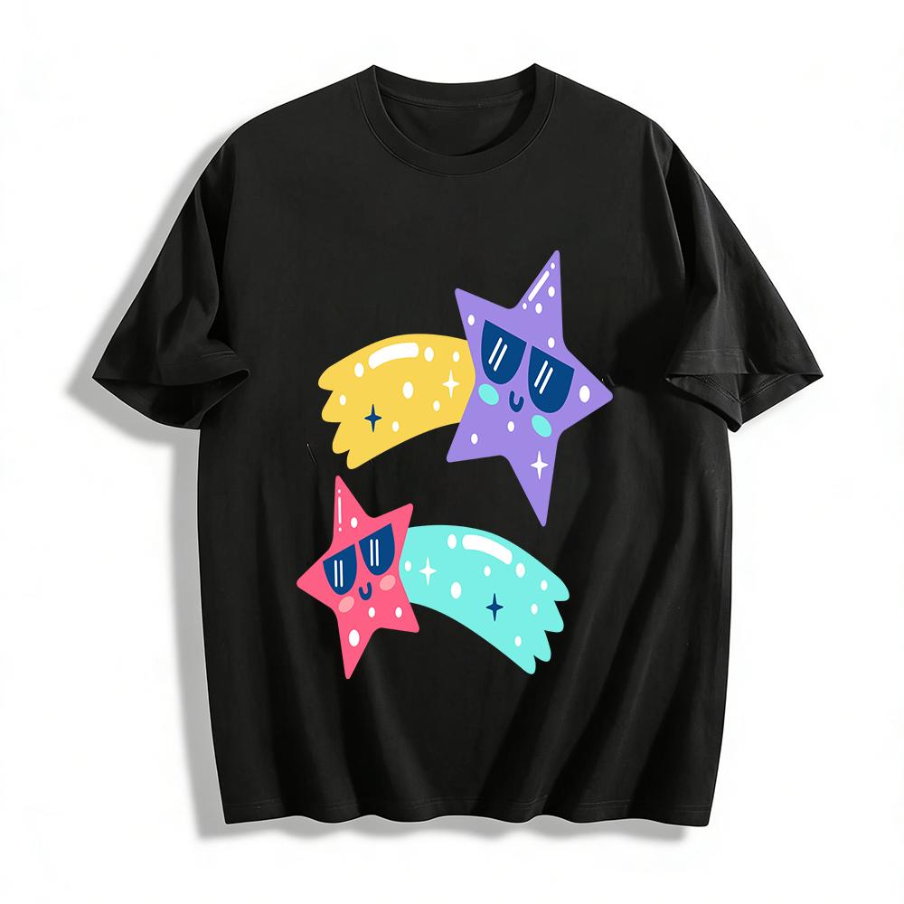 Cute Star Sunglasses Print Kids T-Shirt Fun Meteor Pattern Casual Breathable Top For Boys Girls Pure cotton T-shirt