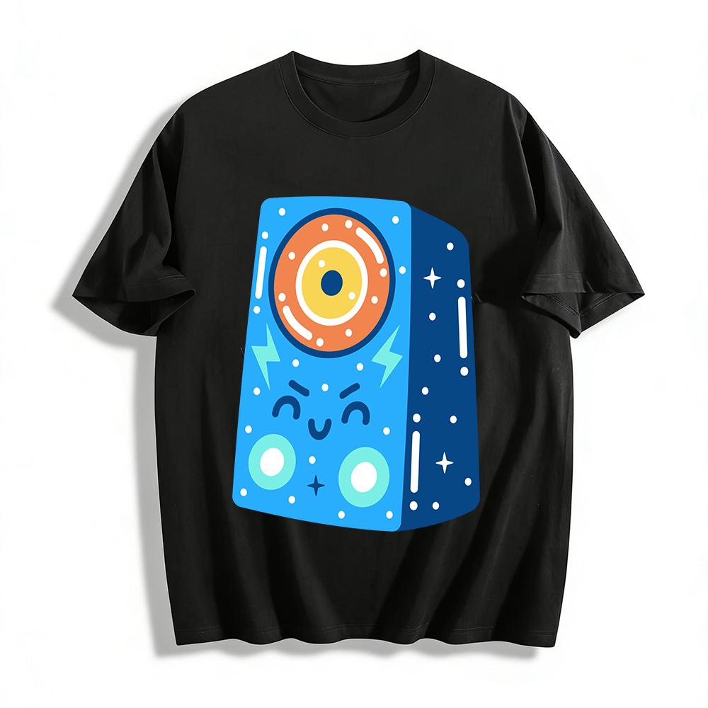 Cartoon Space Radio Print T-Shirt Casual Loose Breathable Crewneck Tops For Adults And Kids Pure cotton T-shirt