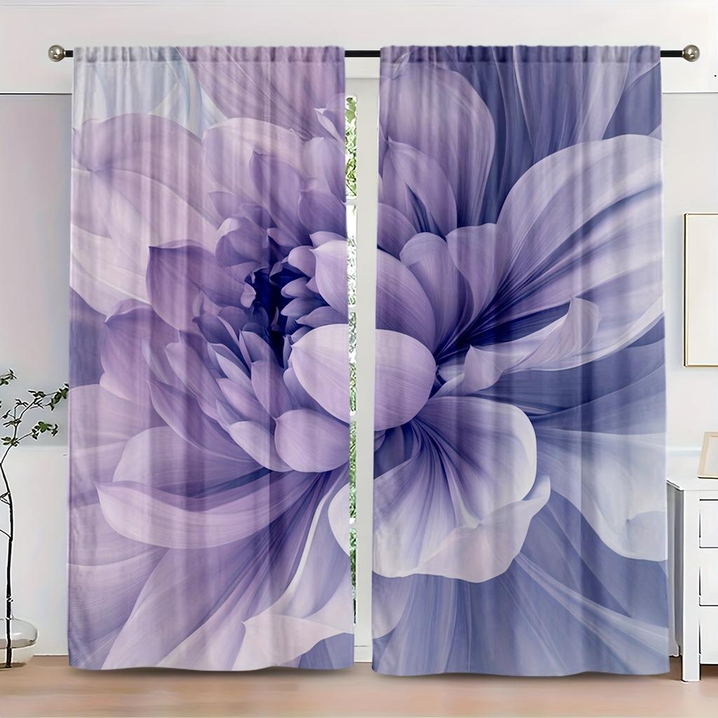 Set Of 2 Elegant Curtains Soft Lilac Grey Abstract Floral Design Exuding Tranquil Atmosphere Sheen Fine Detailing Curtain Polyester