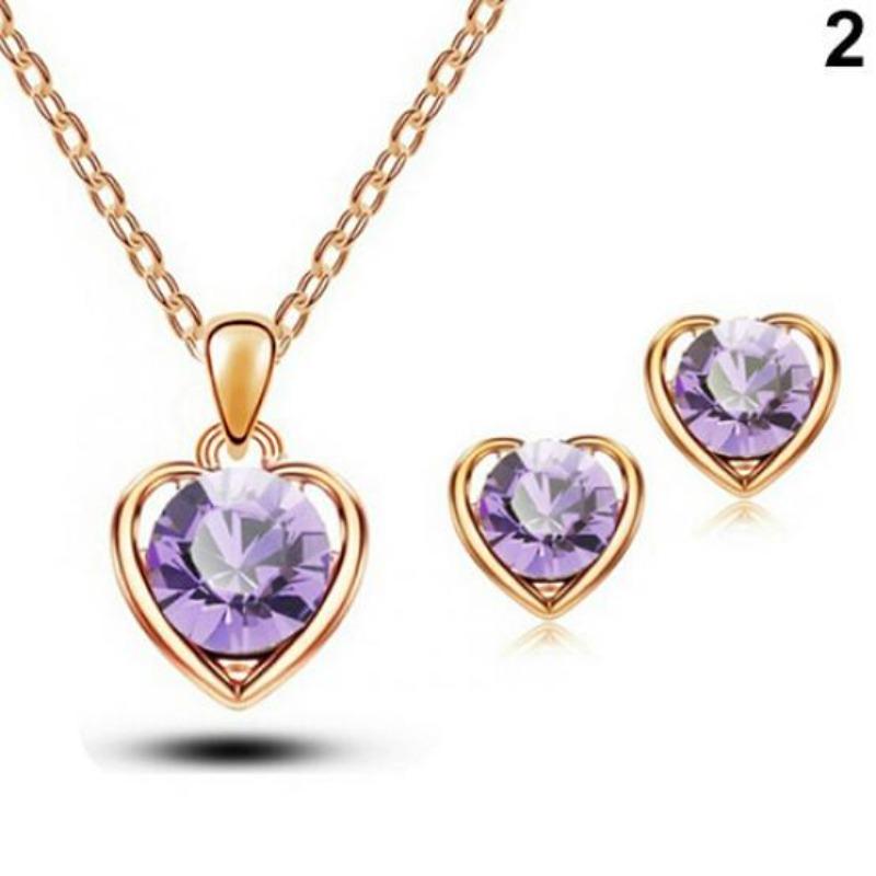 Women's Fashion Jewelry Heart Pendant Necklace Ear Studs Earrings Set