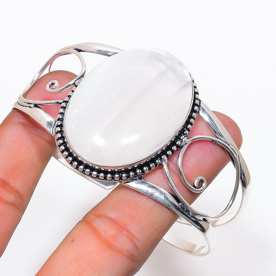 Natural Rainbow Moonstone 925 Sterling Silver Cuff Bangle Adjustable AC-1421