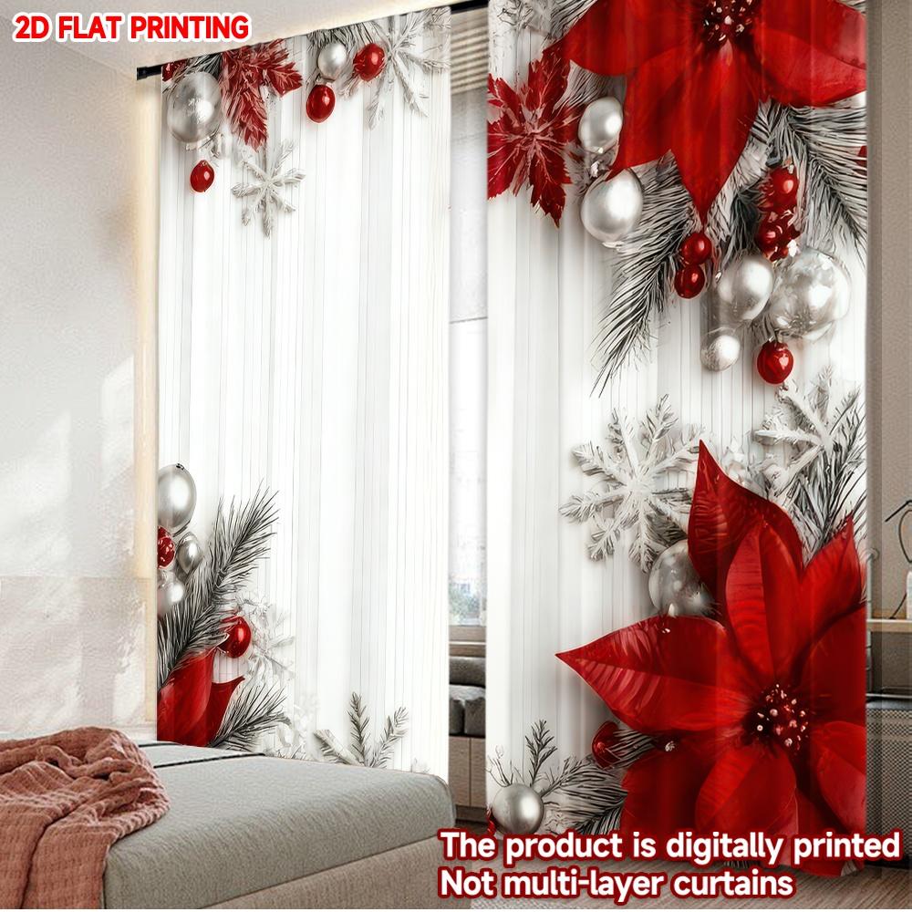 Set Of 2 Flat Printing Christmas Hot Curtains Red Flowers Snowflakes Digital Printed Polyester Drapes Party Decorations Curtain