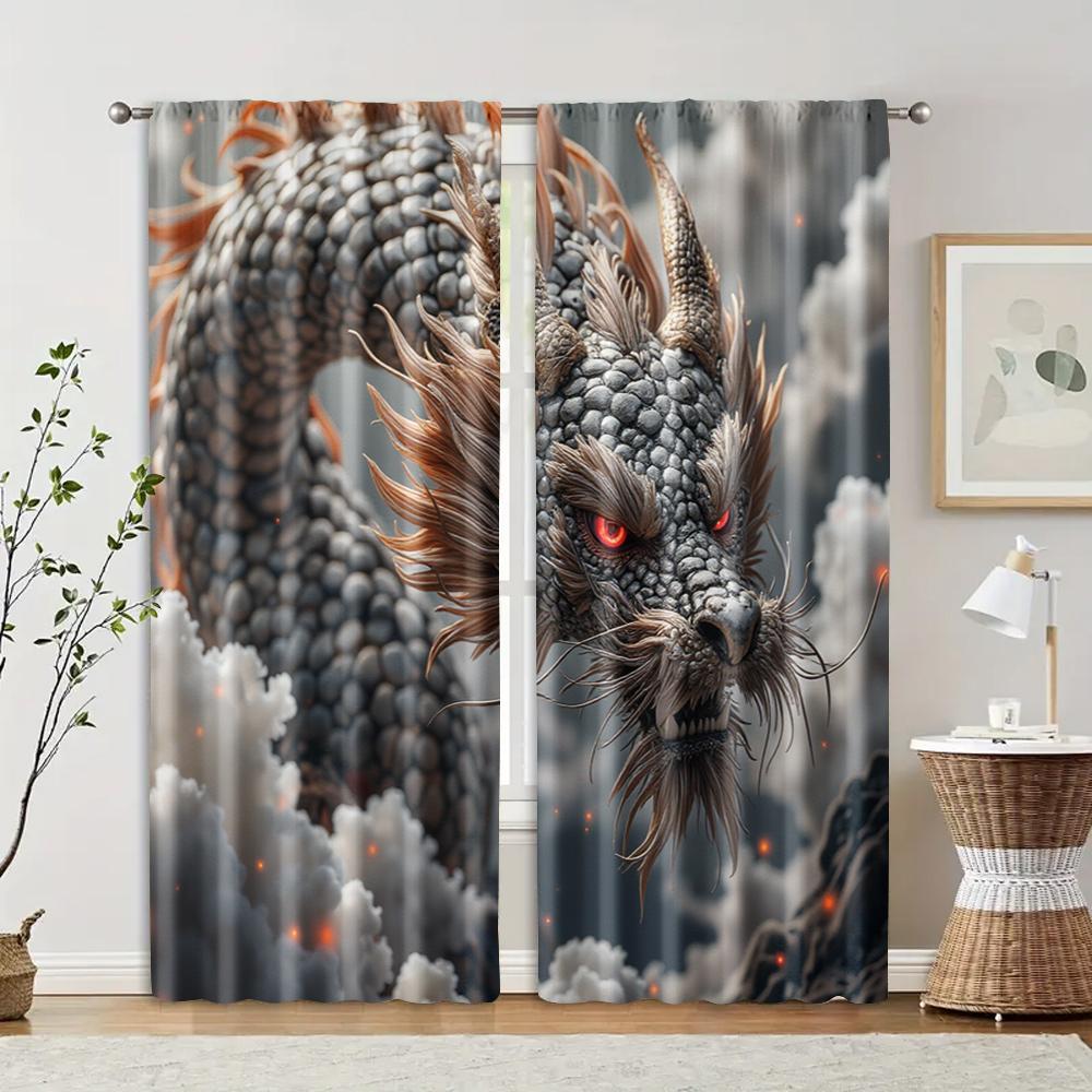 Set Of 2 Filtering Curtains Excluding Rods Non Movable Without Batteries Vibrant Dragon Use Bedrooms Living Rooms Curtain Polyester Perfect For Great