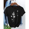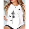 New Summer Dandelion Butterfly Print Women Tshirt Casual White and Black T-shirt Funny T Shirt Gift for Lady Young Girl Tops