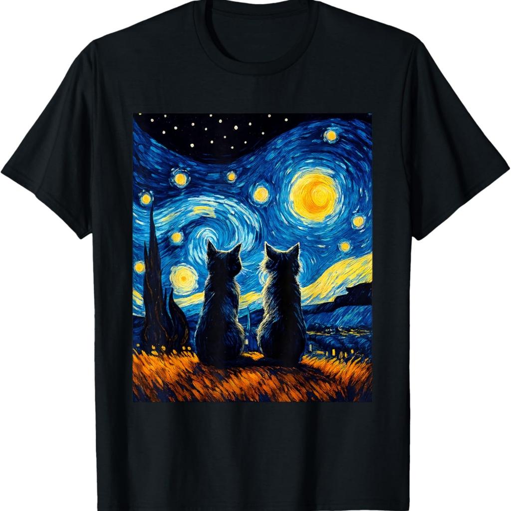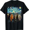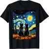 Black Cats Lover Starry Night Vincent van Gogh T-Shirt(2)