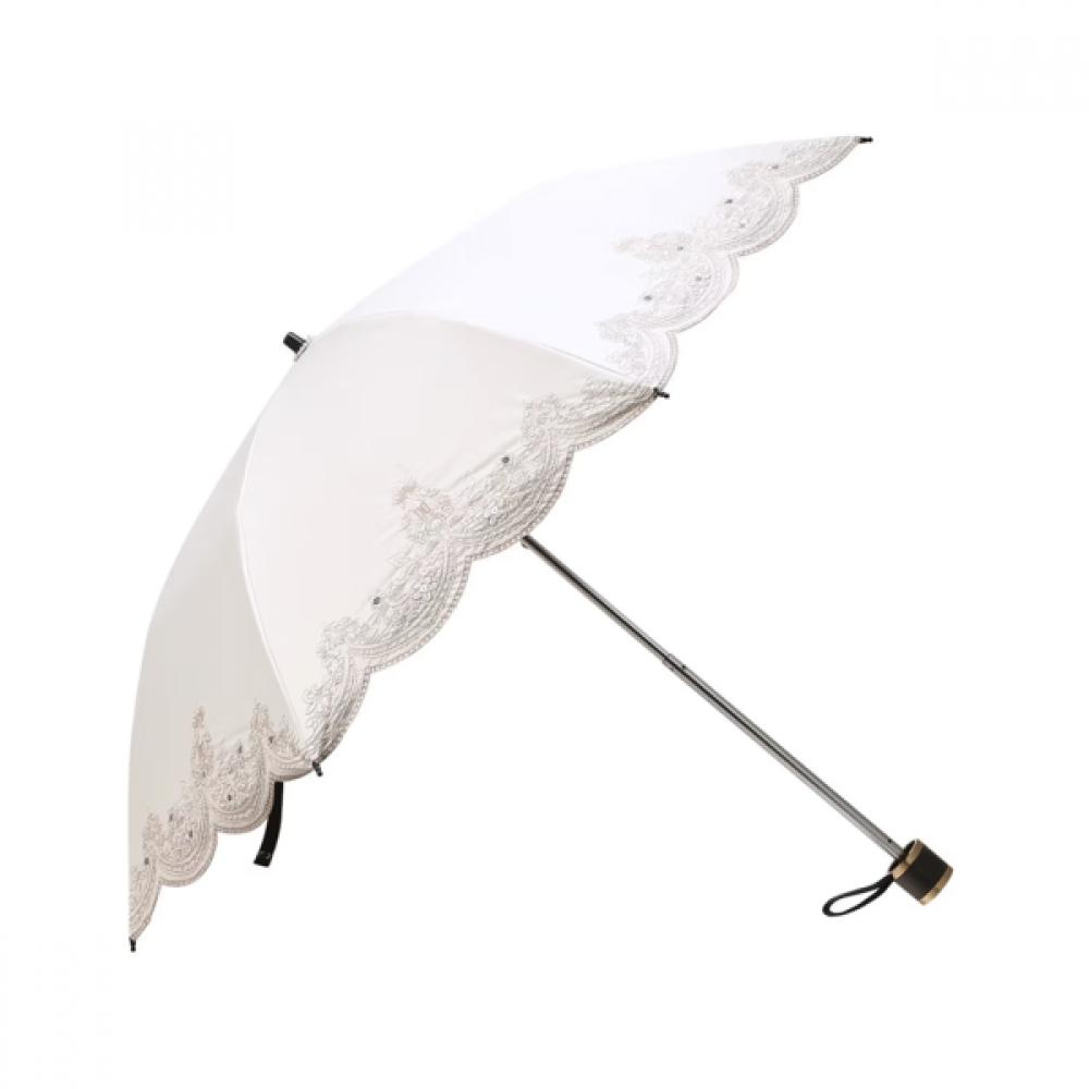 DBUM6E107I2 [Daks Umbrella][Sun Umbrella] Ivory Sequin Embroidered Umbrella features a clean solid color base accented by elegant flower embroidery. Made from lightweight materials, it is easy to carry and offers UV protection, making it a versatile item for use as both an umbrella and a sunshade.