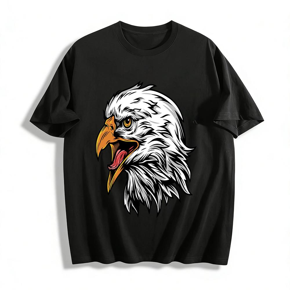 Roaring Bald Eagle Graphic Tee Casual Animal Print Top For Men Women Pure cotton T-shirt