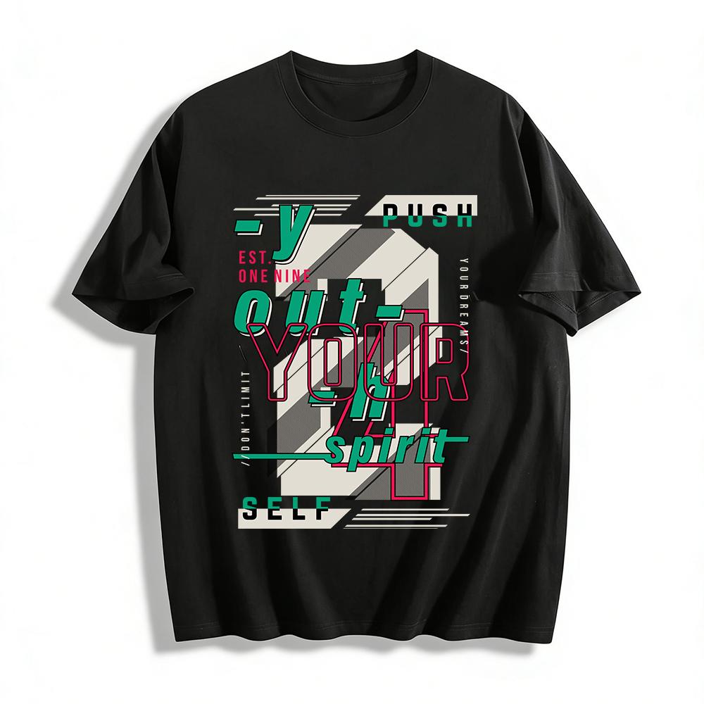 Push Your Spirit Graphic Tee Street Style Casual Loose Fit Top Pure cotton T-shirt