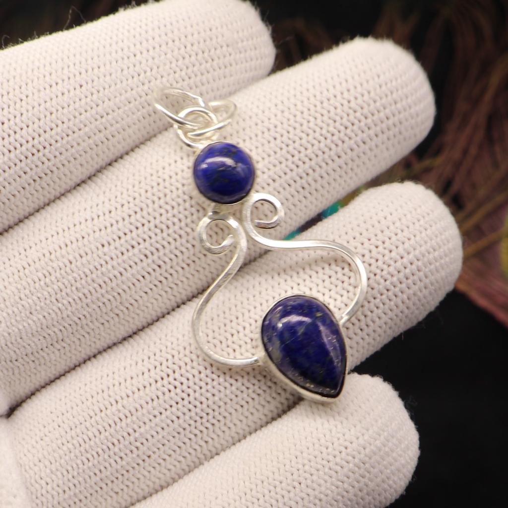 Lapis Lazuli Gemstone 925 Sterling Silver Handcrafted Designer Pretty Pendant 1.60" For Mother