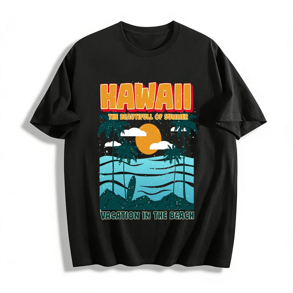 Hawaii Summer Beach Vacation Printed Casual Short Sleeve T-Shirt Pure cotton T-shirt