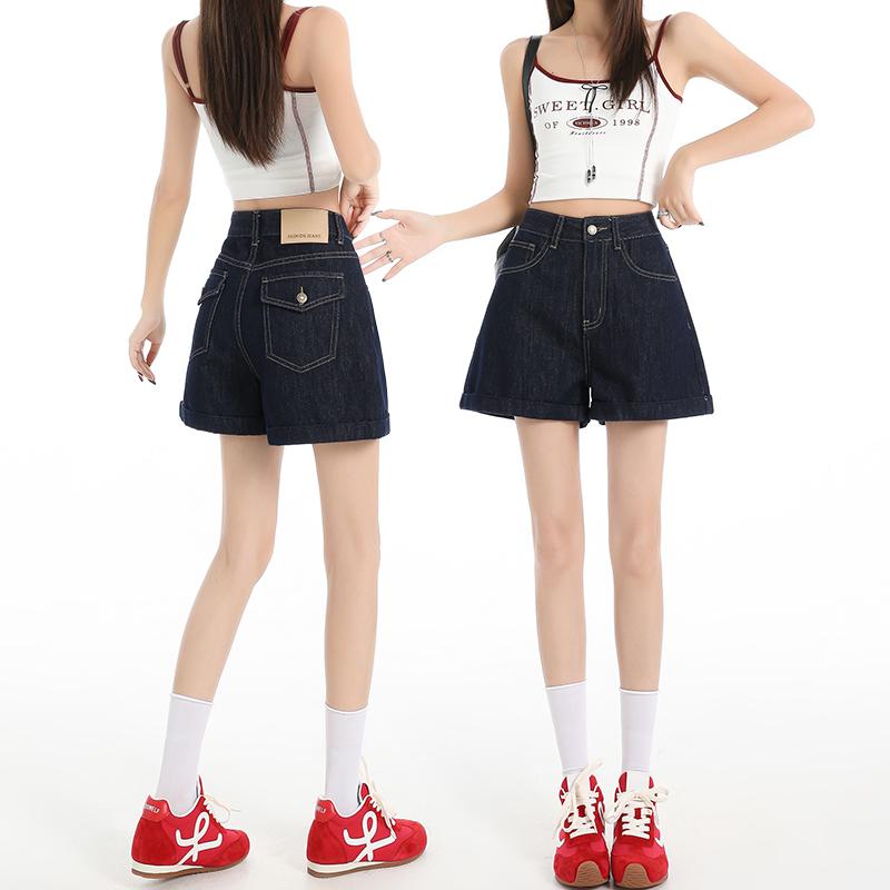 Denim Shorts for Women In Summer Retro High Waisted Slimming A-line Short Pants