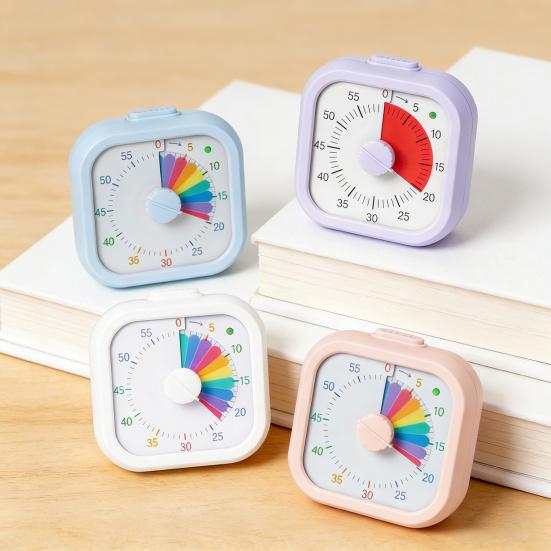 Featuring a child-friendly knob adjustment, even young children can operate it independently without complicated buttons. The durable square casing with rounded edges is anti-fall and safe for classrooms. The rainbow-colored countdown dial visually displays the passage of time with clear markings at 5-minute intervals, helping children intuitively understand time without reading numbers.