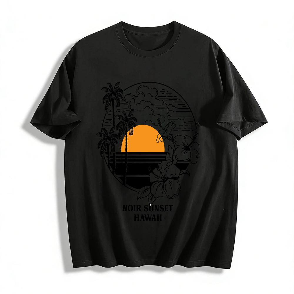 Noir Sunset Hawaii Coconut Tree Sunset Print Casual T-Shirt Pure cotton T-shirt