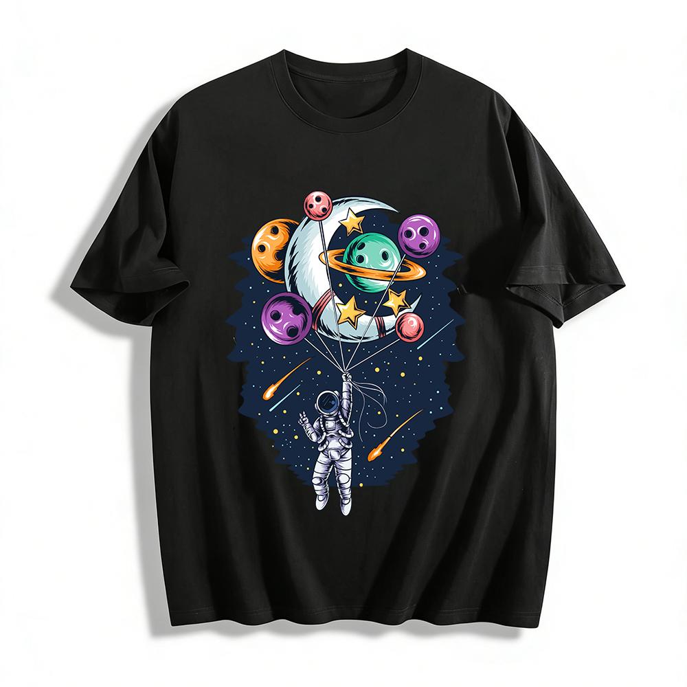 Astronaut Planet Moon Print Casual Short Sleeve T-Shirt Pure cotton T-shirt