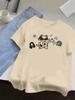 Casual round neck short unisex T-shirt for women street clothes Harajuku fashion t-shirts with cute cat touching