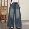 Plus size Vintage high waist casual loose long Women summer jeans denim wide leg Pants