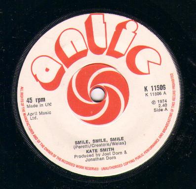 7inch Record KATE SMITH Smile Smile Smile K11506 Antic 1974 UK Pop Used