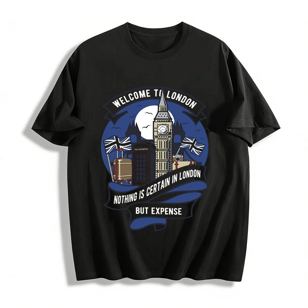 London Landmark Print Tees Travel Themed Casual British Style Tops Pure cotton T-shirt