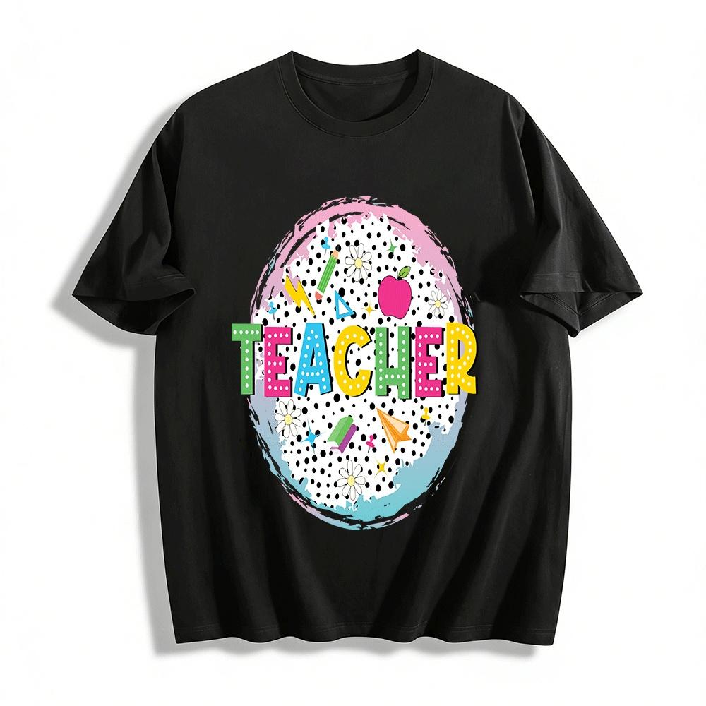 Cute Teacher Themed Print Casual T-Shirt Teacher's Day Gift Top Pure cotton T-shirt