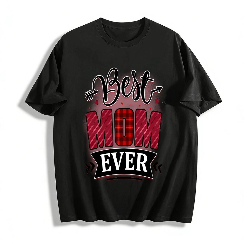 Best Mom Ever Letter Print Casual Top Mother's Day Gift Tee Pure cotton T-shirt