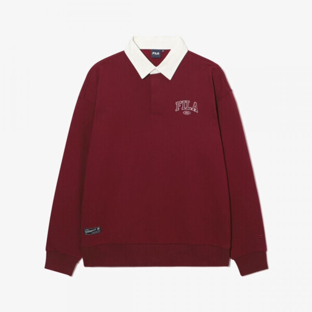 Fila Rugby Men's Crewneck FS253PO01U002_639 is inspired by rugby shirts and reinterpreted with sporty sensibilities. The cotton twill collar detail stands out, with a loose semi-overfit silhouette and slightly dropped shoulder line as its characteristics. The iconic brand logo is located on the chest. It is easy to style with various bottoms.