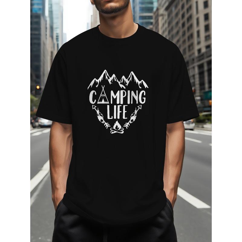 Men'S Print Summer T-Shirt with an Outdoor 'CAMPING LIFE' Design, Casual And Comfortable Round Neck Short Sleeve, Suitable for Daily Wear And Sports