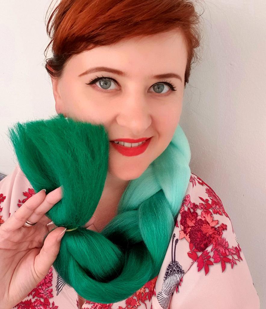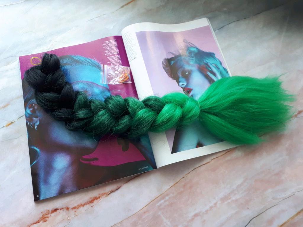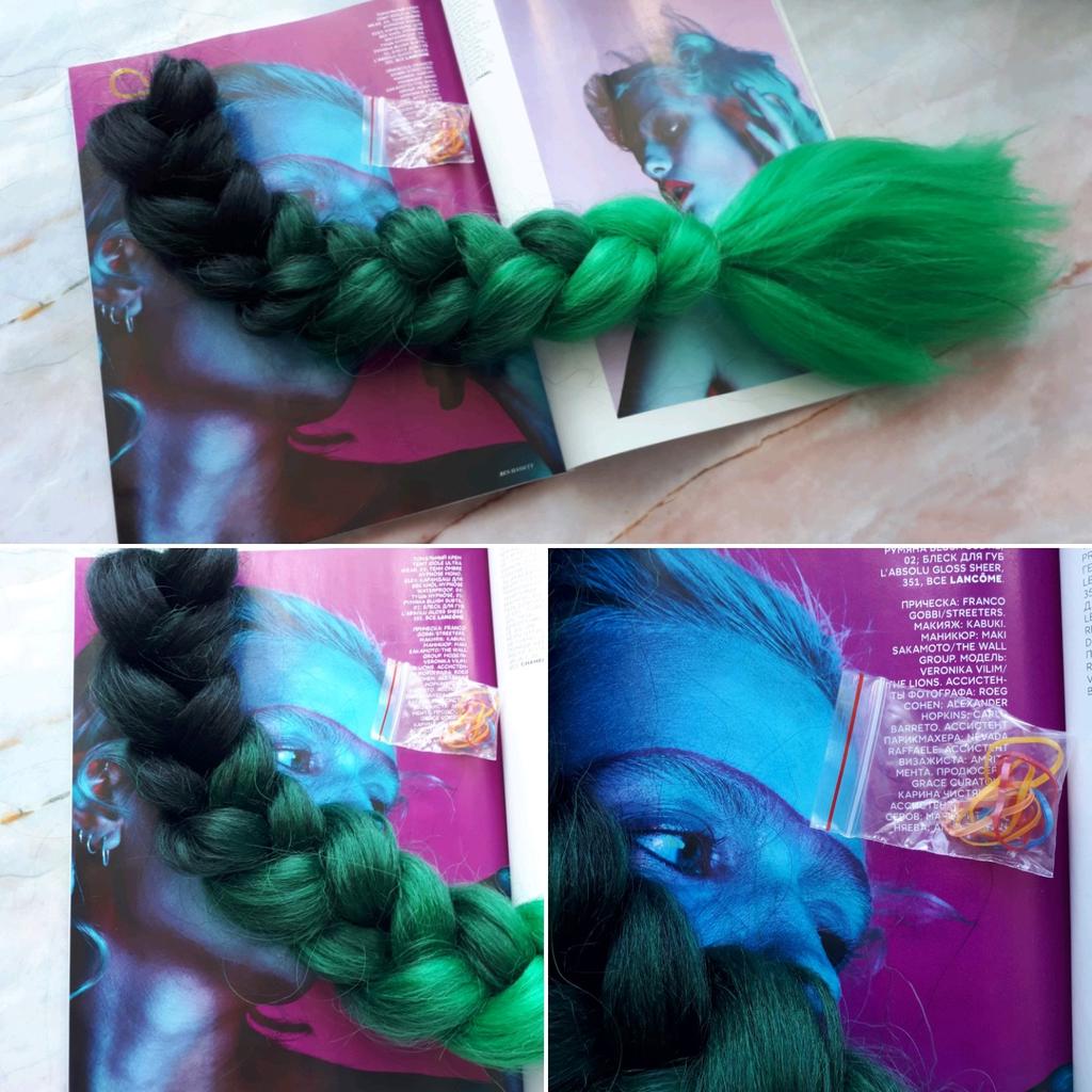 Канелон с зелёным градиентом. Канекалон – это искусственное волокно высокого качества, по своему виду максимально приближенное к натуральным прядям волос. Дреды, африканские и французские косички, а также другие виды плетения с использованием канекалона помогут выделиться из толпы и просто сделать свою жизнь немножко ярче. Я приобрела его для Фашинга. Если кто не знает, Фашинг это карнавал, который проходит каждый год в Германии в феврале месяце. Толпы людей гуляют по городу в разнообразных костюмах, весь центр заставлен сценами, очень интересно и весело. В этом году я захотела попробовать вплести в волосы канелон. Канелон хорошего качества, цвет я выбрала с градиентом. У продовца огромный выбор цветов, так что на любой вкус и цвет. Доставка 10 дней до Германии. К покупке рекомендую.
