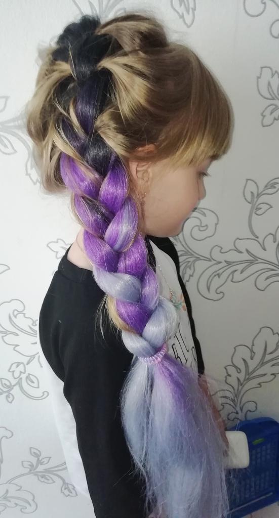 И снова канекалон, и снова для моей Принцессы.👧🏼 Канекалон от магазина Girls Wigs. Пришёл в Алтайский край почти за 2 недели, что очень быстро. Отслеживался до России. Упакован в пакет. Запах посторонний отсутствует. Не запутан, все отлично. Канекалон гафрирован слегка, поэтому такой объёмный. Путается, но терпимо. Расчесать возможно, конечно, но с трудом,однако делится на пряди хорошо. Цвет в этот раз взяла под номером 76,а вообще у продавца на выбор аж 95 цветов, если не ошибаюсь. 😲 Есть, как однотонные, так и переход цвета, как у меня. Вес 100 грамм, длина косы около 59 см, длина расплетенных волос около 68 см. Дочь очень любит косы плести именно с ними, поэтому берём, и это далеко не последний. 😌😂