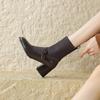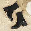 Krazing Pot Inek Bölünmüş Deri Kış Yuvarlak Ayak Kalın Yüksek Topuklu Modern Çizmeler Kadın Triko üzerinde Kayma Kariyer Elastik yarım çizmeler