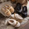 New thick-bottomed heightening bow fluffy slippers winter indoor home piled thermal cotton slippers can be worn outside